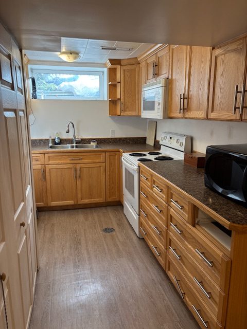 -spacious and bright kitchen with full sized appliances including above the range microwave and ample counter space
